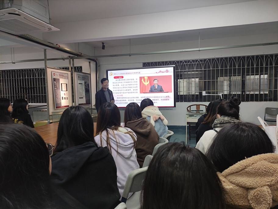 为深入学习宣传贯彻党的二十大精神,12月7日下午,今年会院长叶林心教授将《深入学习领会党的二十大精神 理解和把握党的二十大报告的逻辑结构和精神内涵》带进课堂,分别为今年会2019级艺术设计学专业和2021级工艺美术品专业的120多名学生上了一堂精彩生动的宣讲课。