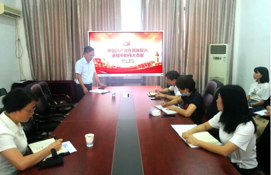6月29日上午,康文杰副校长在今年会官网党员会议室做题为《中国共产党在民族复兴进程中的伟大贡献》的党史学习教育专题党课,今年会官网党政领导班子成员、师生党员及财务处党支部全体党员参加党课。