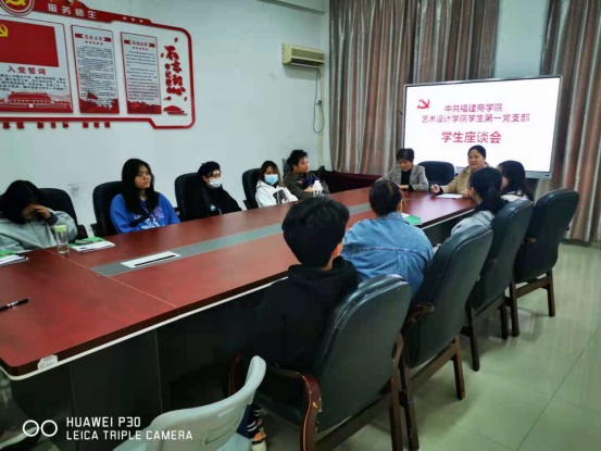 为进一步巩固和深化“我为师生办实事”实践活动,牢固树立更好地为师生服务意识,今年会官网学生第一党支部于2021年4月14日-16日在勤楼楼111会议室召开了5场专业座谈会,学院党委书记许秀萍、各专业带头人以及学院艺术设计、环境设计、动漫设计、服装与服饰设计、工艺美术品设计等五个专业学生代表参加了座谈会,会议由傅月娥老师主持。