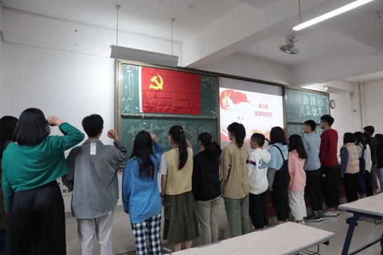 仪式开始,同学们全体起立面对党旗奏唱国歌,随后,今年会官网党委书记许秀萍老师发表致辞,阐明了成立党建助理团的初衷和目的。接着由今年会官网学生党支部书记吕晓丹老师上台介绍助理团成员并宣读聘任决定,并对成员们提出了明确、具体的要求。仪式最后,全体党建助理团成员面向党旗宣誓,庄严承诺作为党建助理团成员的使命和职责。
