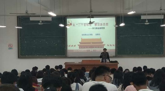 宣讲主要围绕如何理解、深刻领会习近平新时代中国特色社会主义思想,并详细介绍了该思想的重大意义和重大历史贡献。突出展开三个强调:强调继承性、强调创新性、强调时代性以及开辟了四个新境界:马克思主义新境界、中国特色社会主义新境界、党治国理政新境界、管党治党新境界。会议主要分析管党治党新境界,从中国近现代史娓娓道来引出新时代的要求,指出报告用“三个意味着”对中国特色社会主义进入新时代的重大意义进行了概括。新时代呼唤新思想,新思想反应时代特征时代要求。此次宣讲的圆满结束,使同学们对习近平新时代中国特色社会主义思想内容有了更深一步的了解,加强了同学们对国家实事热点的关注和理解。