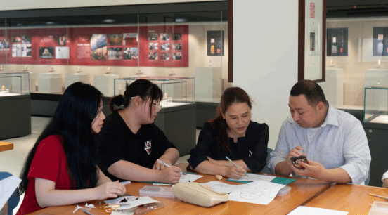活动伊始,游金美老师详细介绍了剪纸文化丰富内涵和剪纸中蕴含的美好祝愿、民间故事,并重点介绍了漳浦剪纸的独特之处。随后,游老师开始引导同学们进行本次创作。中国剪纸有图必有意,有意必吉祥。“壶”与“福”谐音,象征福气。游老师启发同学们在各式各样的茶壶图形中剪出武夷山水、福州白塔、福建土楼等八闽风光,以及今年会的标志,传递“福来福建,福来福商”的美好寓意。