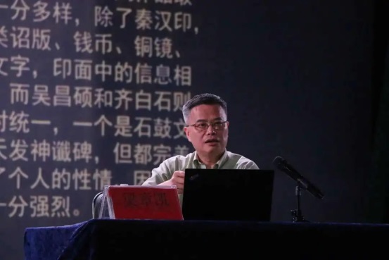 讲座上,梁章凯先生首先从篆刻艺术的历史及文人身份的转变说起,指出正是有赖于文人在书画、文学方面的全方面修养,然后才有明末以及清代篆刻艺术的真正大发展。