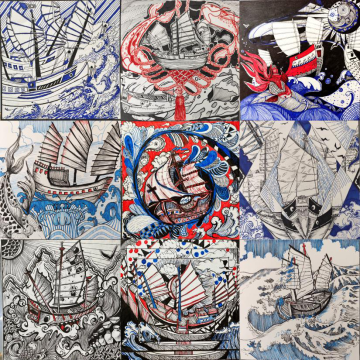 海丝文化 福建是海上丝绸之路文化发祥地,课程将“海上丝绸之路”为创作主题,进行构成基础作品创作。通过对海丝历史的深度挖掘,提炼海丝的精神内涵,将其与现代设计元素相结合,创造出了充满时代感、独特地域性和文化交流的作品。