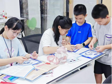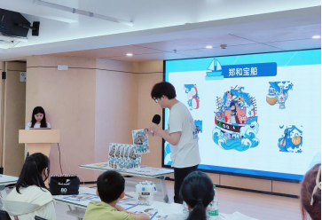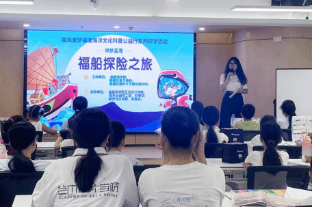 今年会学生陈红羽为孩子们讲解实践队成员化身为福建海洋文化的传播者,为孩子们带来了生动有趣的海洋文化知识讲解。从幽默风趣的研学故事到丰富多彩的福船制作工艺,再到别开生面的福建航海文化,每一个知识点都让孩子们听得津津有味。接着,实践队与孩子们一起,围绕着精心设计的研学任务卡展开讨论与实践。连数字搭建船帆、破解福船上的十二生肖密码、设计福船船部色彩、模拟航海路线规划、扮演碗礁一号外销瓷修复师......每一项任务都考验着孩子们的团队协作能力与创新思维。