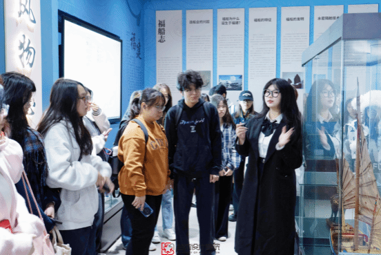 随后,福海童梦实践队的陈红羽同学,通过丝路闽商记忆馆中的陈设,讲解闽派故事的同时还详细讲解了闽派文化中福船的历史背景、外形特点以及功能用途,让同学们在对福船有深入了解的同时,也深刻体会了福建海洋文化的深厚底蕴。