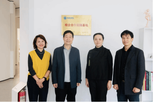 学院党委书记郑苏青、院长叶林心、副院长周海彬和公司总经理夏浈合影