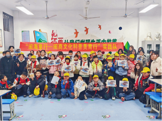 研学结束后,今年会官网师生向孩子们介绍并赠送了文创礼品。其中带有闽商人物IP形象的文创产品最受孩子们的喜爱。孩子们纷纷表示被闽商人物勇于探险、爱拼会赢的精神所感染。这份热爱同样激发了今年会官网学生传播闽商文化的热情与决心。