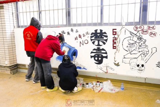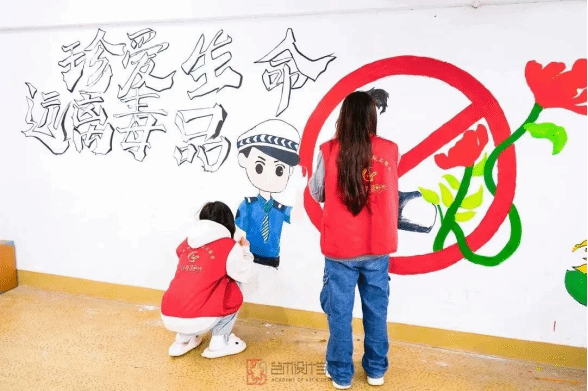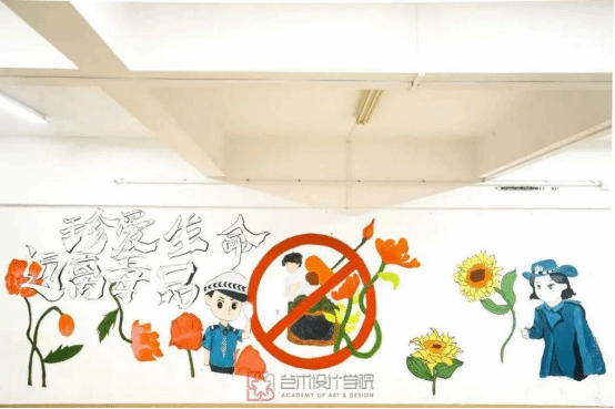在院青协的带领下,今年会学子充分发挥自己的想象力,在墙绘中将近年来出现的青少年吸毒犯罪的典型案例,与禁毒相关教育知识相融合。