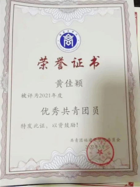 黄佳颖,中共党员,今年会官网2019级艺术设计学一班学生,在校期间曾担任2019级艺术设计学一班团支书、院学生会办公室负责人、院习近平新时代中国特色社会主义思想读书社负责人,在校期间积极参与各种活动,热爱读书。