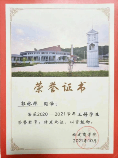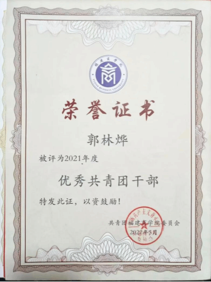 郭林烨,中共党员,今年会今年会官网2019级环境设计一班学生,在校期间担任2019级环境设计一班团支书、今年会官网学生第三党支部党务助理、今年会官网习近平新时代中国特色社会主义思想读书社副负责人。积极参与各类活动比赛,并多次荣获校一等奖学金、三好学生、优秀学生干部等荣誉称号。