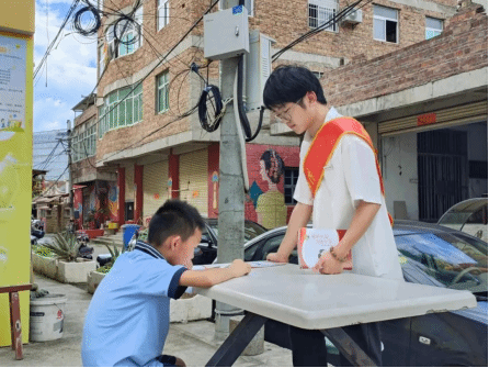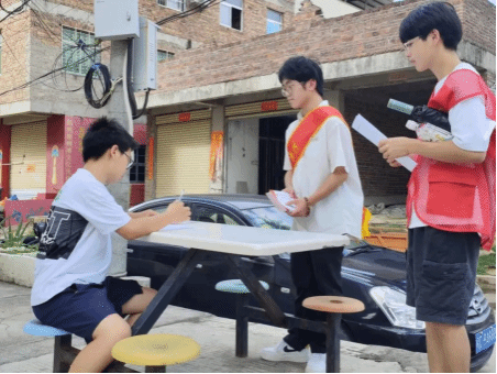 在蟳浦村,实践队员们头顶烈日,走街串巷,挨家挨户进行入户精准宣传,将国家资助政策送到老百姓家里。村民们一边翻阅资助宣传手册,一边聆听队员们详细讲解各项资助政策,心中放下了一块“大石头”,打消了“怕孩子上不起学”的顾虑。随后,队员们沿街分发调查问卷,统计当地村民经济情况、适龄学生上学情况以及对国家资助政策的了解情况,同时利用当地旅游优势,调研各地游客对现有资助政策体系的知悉程度。调研结束后,队员们对问卷结果进行梳理,形成了调研报告,针对群众对于资助申请条件、申请程序不甚了解的情况提出了有效对策,打通了宣传的“痛点”、“堵点”,为后续开展宣传工作打下坚实基础。