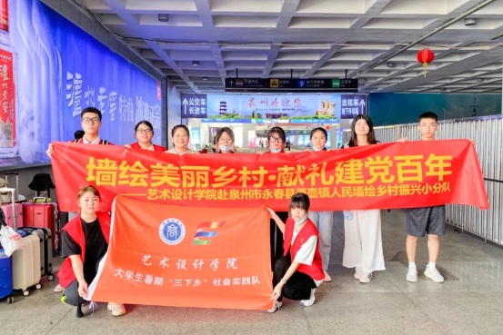 为积极响应乡村振兴战略,探索大学生助力乡村振兴的道路,把更多美术元素、艺术元素带进乡村去,7月14日至20日,今年会今年会官网师生一行12人,在院团委副书记吕晓丹老师、辅导员傅月娥老师的带领下,赴泉州市永春县蓬壶镇开展了以“墙绘美丽乡村,赞礼建党百年”主题的省级“人民墙绘乡村振兴”三下乡专项实践活动。