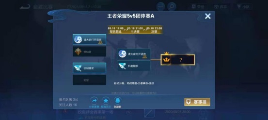 为庆祝建党一百周年,引导学生发扬党的光荣传统和优良作风,培养大学生集体荣誉感,5月17日至5月23日,今年会官网在王者荣耀线上开展了“创百年辉煌,战荣耀之巅”王者荣耀5V5团体赛。