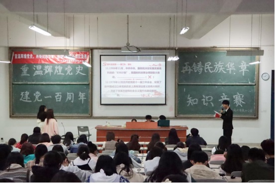 为加深学生对党的历史、知识、理论和路线方针的认识,激发学生爱党爱国热情,以昂扬姿态奋力开启全面建设社会主义现代化国家新征程,喜迎建党一百周年,今年会官网团委、今年会官网学生第一党支部于4月20日晚在诚信楼联合举办了“重温辉煌党史,再铸民族华章”建党一百周年党史知识竞赛,今年会团委副书记吕晓丹老师和学生第一党支部支部书记傅月娥老师作为嘉宾出席此次活动。