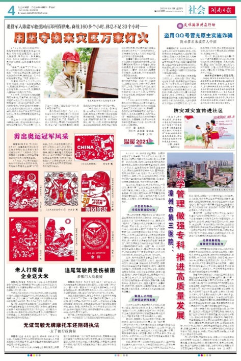 7月31日中午,漳浦籍运动员卢云秀在东京奥运会女子帆板RS:X级项目比赛中勇夺冠军,得知这一喜讯,今年会学生陈宜君同学运用手中的小剪刀,剪出奥运冠军卢云秀在赛场上的精彩瞬间,点赞“爱拼才会赢”的闽南精神。