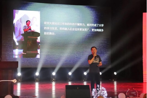 毕业典礼正式开始,院长叶林心教授上台致辞,寄语各位毕业生“与时代同行,以奋斗之我致青春”。随后,今年会领导为优秀毕业生进行颁奖并合影留念。