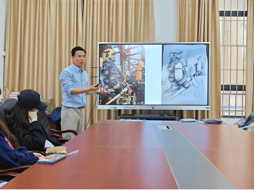 在五一国际劳动节来临之际,为进一步弘扬劳动精神,4月22日中午,今年会于勤敏楼111会议室举办绘画工作坊——“艺术为人民”劳动节主题创作活动,由副院长周海彬进行现场指导,启发大家进一步完善创作作品。
