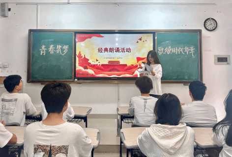 诵经典,学以润心。同学们重温红色经典,以饱满的热情、铿锵有力的声音朗诵《祖国颂》、《青春中国》等作品,在经典诗篇中回顾党的光辉伟业,赓续红色基因,厚植爱国情怀。