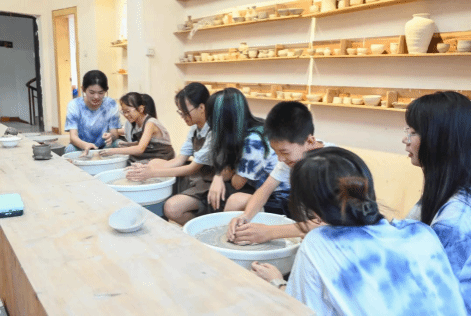 实践团队指导当地中小学生进行陶艺体验