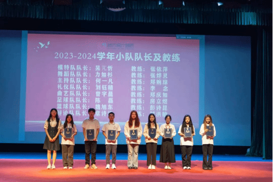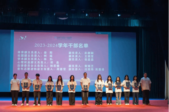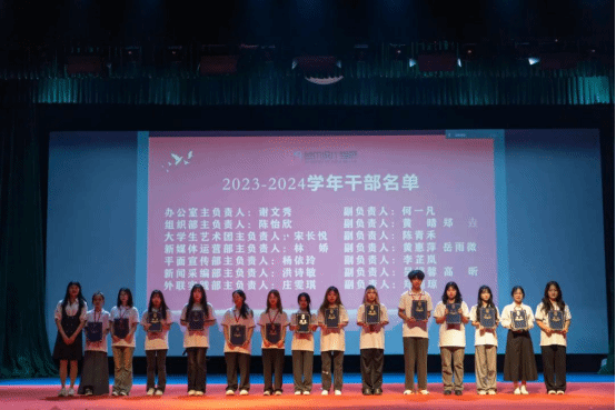 会议在嘹亮的团歌声中正式拉开帷幕。吕晓丹老师为2023-2024学年团委学生会各部门干部、各小队队长及教练颁发聘书,并为优秀干部及宣传标兵颁发了荣誉证书。这不仅是对往届学生骨干辛勤付出的认可,也是对大家在学思践悟道路上继续前行的支持和鼓励。