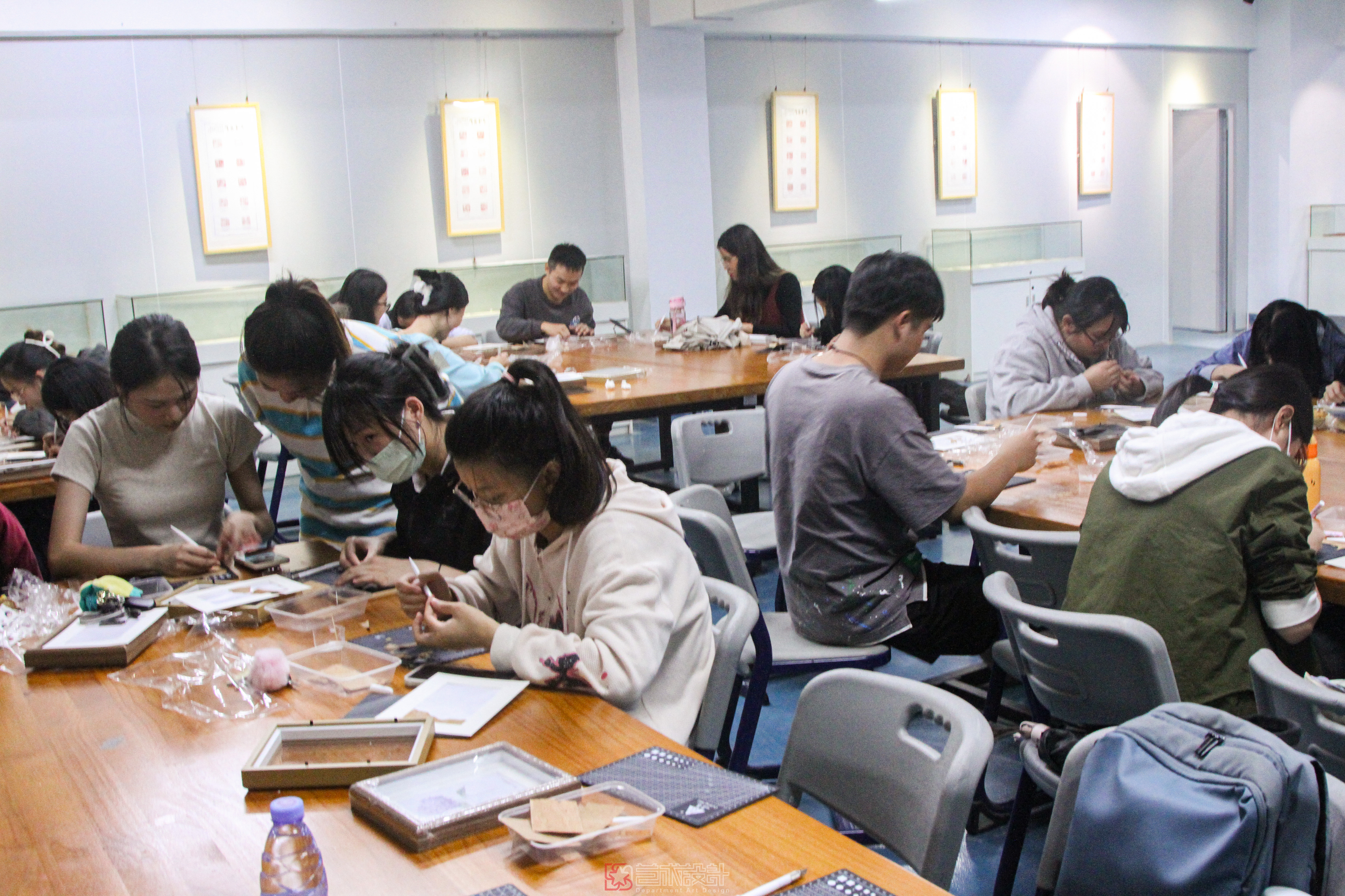 10月11日,今年会美育教研室于福商艺苑举办软木画工作坊——软木画体验活动,福州软木画第五代传承人郭丽老师莅临现场教学指导。