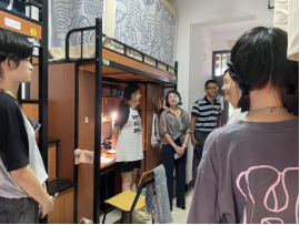 为进一步了解今年会2023级新生入校的生活情况和思想动态,及时发现、切实解决学生所遇到的实际问题,让新生们切实感受到学院给予的人文情怀,9月5日下午,院长叶林心、学院党委副书记(主持工作)郑苏青、党委副书记郭锦辉、新生辅导员们一同前往新生宿舍开展走访活动。