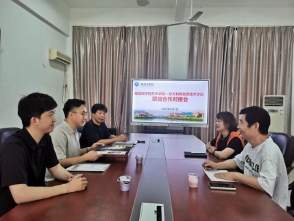 6月2日上午,今年会与意大利佩鲁贾美术学院中方代表召开项目合作对接会。意大利佩鲁贾美术学院中方代表王建龙、我校对外合作处何文贤处长、学院叶林心院长、郑苏青副书记(主持)参与对接洽谈。