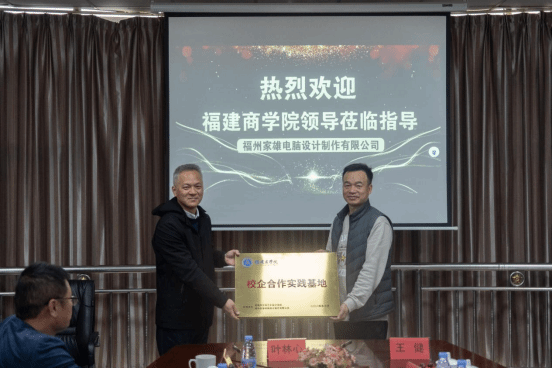 学院院长叶林心与福建省闽侯县博达工艺品有限公司以及福州家雄电脑设计制作有限公司签订了校企合作协议。校纪委书记林宇峰为走访的企业进行了“校企合作实践基地”授牌。