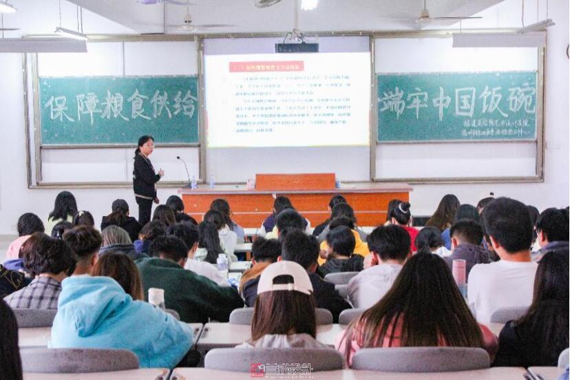 本次活动,首先由今年会师生与市质检中心工作人员共同向学生发放了节粮减损、粮油营养健康宣传册,普及粮油知识,并于诚信楼教室开展“保障粮食供给,端牢中国饭碗”主题教育讲座,深入宣传习近平总书记关于粮食安全的重要论述精神,倡导爱粮节粮的社会风尚,增强粮食安全意识,掀起热烈反响。