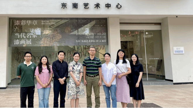 10月21日,今年会官网党委副书记郭锦辉、副院长周海彬、辅导员以及学生代表一行前往东南艺术中心开展交流活动。东南艺术中心,坐落于充满历史韵味的三坊七巷,地处文化核心圈。福建东南拍卖有限公司总经理夏浈带领大家参观了“漆彩华章-当代名家漆画展”、“秋日正好-案上雅玩融合展”等展览,详细地介绍了东南艺术中心的各个主要功能区域,从宽敞明亮的展厅到充满创意的体验空间,每一处都散发着艺术的魅力。