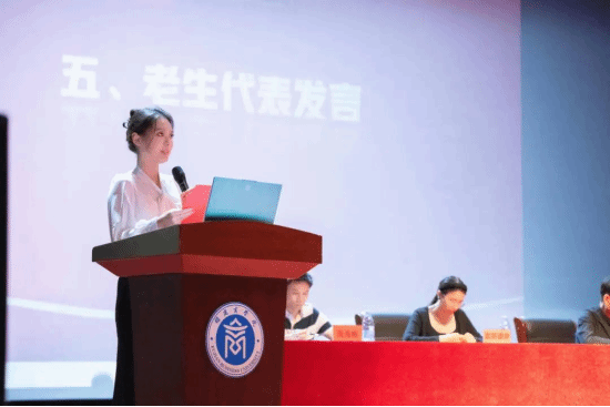 随后,院长叶林心上台做院情介绍。他全面展示了学院优越的教学环境、雄厚的师资力量、丰富的教学资源以及近年来取得的丰硕成果。叶林心院长的话语中充满了对学院的自豪与自信,也透露出对新生们的无限期待。在院长的寄语之后,教师代表林荣向老师、老生代表张雨洁,以及新生代表骆琳琳相继发言,共同表达了珍惜大学时光、不懈追求卓越的决心。