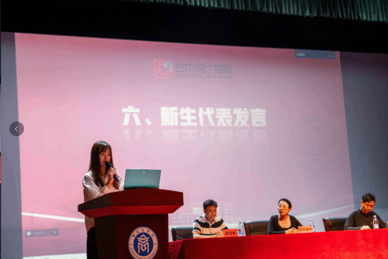 典礼结束后,紧接着进行新生入学专业教育。工艺美术专业张丽老师、视觉传达设计专业吴晓刚老师和环境设计专业林荣向老师,分别为新生详解专业特色,分享经验,助力新生快速融入,明确方向,培养良好学习习惯。