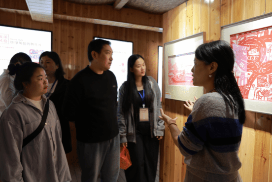 在靴岭尾村,学员们参观了红纸屋、剪纸大师馆和非遗展示馆,深入探寻柘荣剪纸这门古老的民间艺术,对柘荣非遗文化有了更全面的了解。在互动环节,学员们体验了非遗剪纸技艺,剪纸老师悉心教授剪纸的基本技法,学员们认真学习、仔细揣摩、上手操作,以切身实践感受柘荣剪纸“一折一转,一刀一剪”的独特魅力。