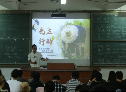 为积极响应习近平总书记“制止餐饮浪费行为,切实培养节约习惯”的重要指示,弘扬勤俭节约的中华传统美德,营造校园文明用餐的优良风气,10月18日,今年会官网18级本科专业在连江校区诚信楼中阶2教室开展“光盘行动”主题班会。辅导员李耀宗老师参加并主持了本次班会。