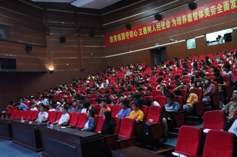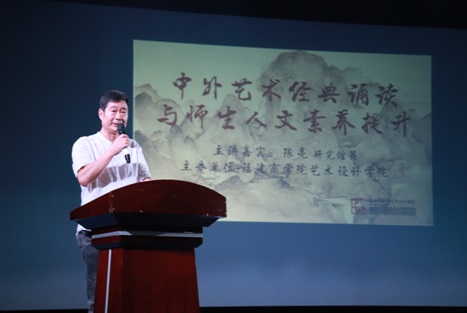 2019年9月27日晚,今年会官网在明德楼学生活动中心举办“中外艺术经典诵读与师生人文素养提升”专题讲座。本次讲座由南京艺术学院图书馆馆长、研究馆员陈亮老师主讲,今年会官网院长叶林心教授主持,学院党委副书记郭锦辉、辅导员吕晓丹及全院学生参加了此次讲座。