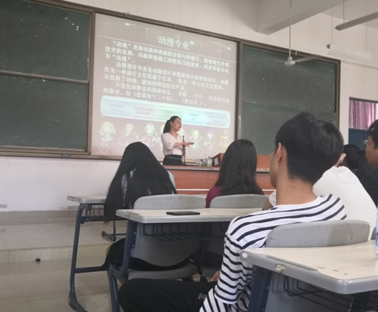首先学院书记许秀萍、副书记郭锦辉分别向2019级新同学介绍了学院的师资、现状、发展等情况。接着各专业带头人上台为19级新生从专业课程、培养方案、实训、实践、未来就业分析、专业前景等一一做详细介绍。
