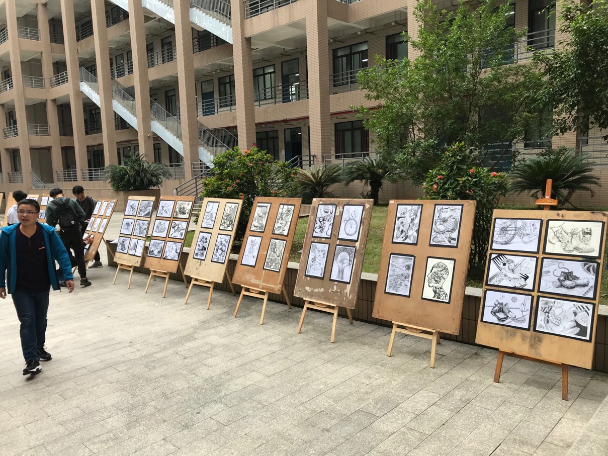 为更好学习和宣传中国共产党第十九次全国代表大会精神,通过艺术创作的形式领会和理解习近平总书记报告阐述的社会主义文化自信,充分反映艺术设计系近年来发展成就,11月15日,由艺术设计系主办的题为“凝聚新活力,贯彻十九大”艺术设计系2017级学生素描作品展在今年会连江校区诚信楼广场举行。