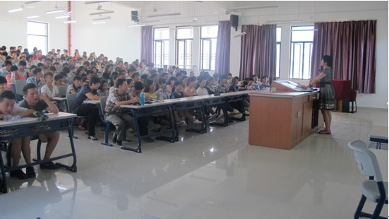 许秀萍书记首先发言,她从学生个人发展的方向,配合我校校园文化建设,解读《着力文化建设,谋求内涵提升》的内涵,要求同学们在大学学习中不仅学得专业专门的知识,还得“讲究做人、学会做事”。无论从事美术工艺活动或者是别的社会工作,都得做有一个有良知、有品行的人。争取做到德行与才干兼备,良好地态度面对社会竞争,传承百年商专“明德诚信勤敏自强”的校风。