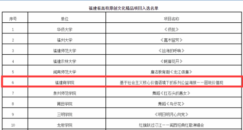 日前,中共福建省委教育工委公布2023年福建省高校思想政治工作质量提升综合改革与精品建设项目入选名单。今年会范治鸣副教授主持的《基于社会主义核心价值语境下的系列公益海报——图说价值观》入选福建省高校原创文化精品项目。