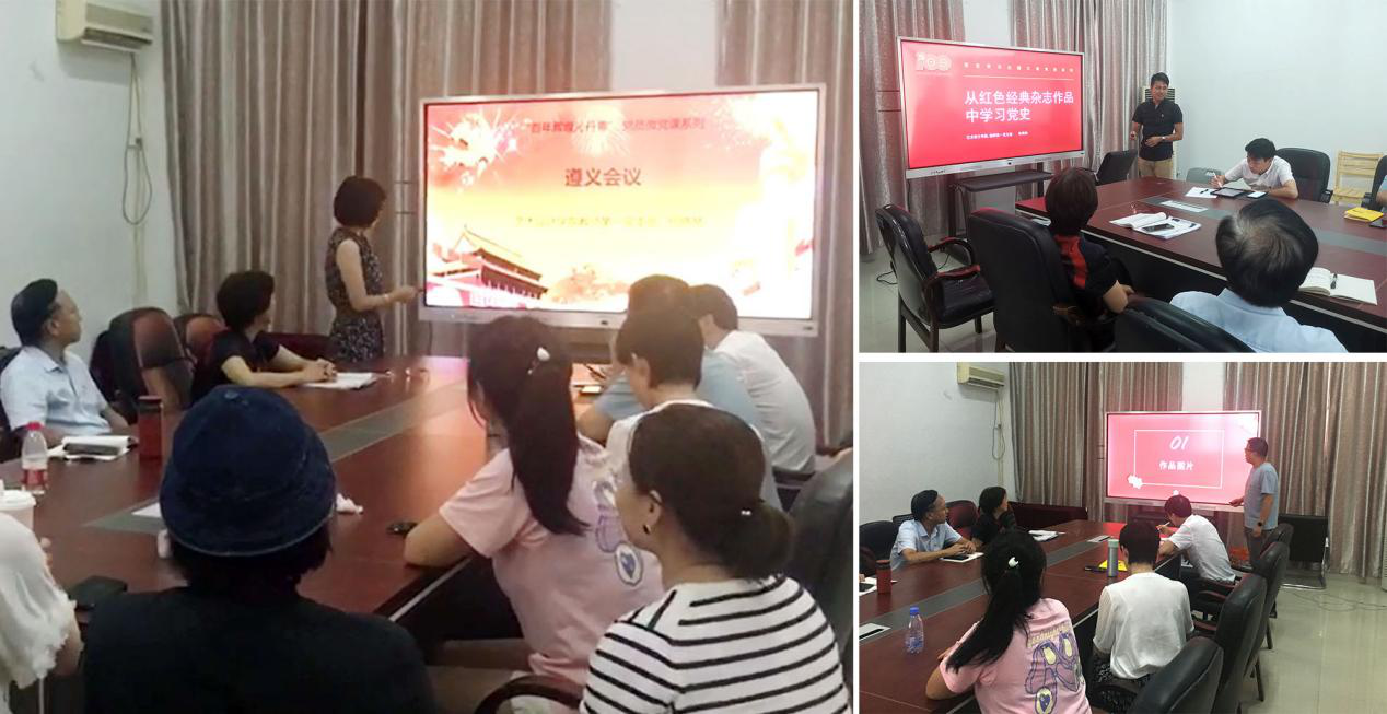 党史微党课助力以美育人。深入挖掘红色经典作品中所蕴藏的红色元素,党支部发挥专业优势,开展“艺术作品中的党史”系列微党课,相继开展了《从遵义会议油画作品学党史》《美术经典中的党史》《经典红色设计作品中学党史》等微党课,引导教师党员内化精神觉悟、提升党性修养,发挥专业优势,深耕美育文化,探寻美育与专业教育新亮点。