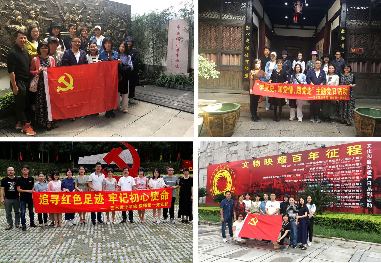 创新“设计行知课”。党支部教师党员结合专业特点,以“实践模块+实践小组”形式开展实地调研,将对设计理论知识的理解与运用融于具体建筑、街巷、景观环境中,达到“行”与“知”相统一。教师党员带领学生赴福州、平潭等地实地调研,吸取传统艺术特色,挖掘设计元素,在实践中体悟设计魅力,提升创新能力。在福建省工艺美术大楼举行的2021届毕业生设计作品展受到社会各界广泛好评,优秀作品已走向市场,服务地方建设发展。近2年党支部教师获批省级一流课程立项3门,校级课程思政示范课程立项4门;指导学生参加2021年米兰设计周大赛,获国家级二等奖2项、三等奖3项;指导学生参加大学生创新创业竞赛,获得省级立项12项。