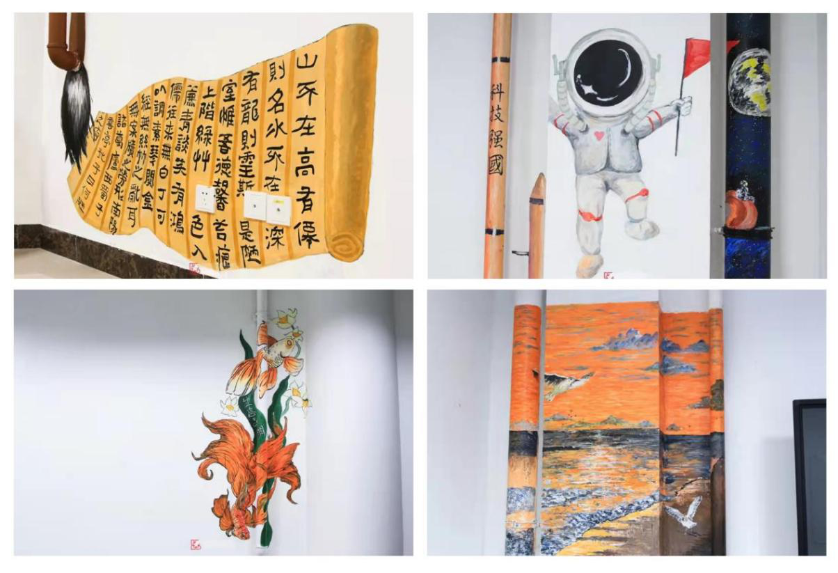 “艺缕阳光志愿服务队”对图书馆管道进行粉饰绘画