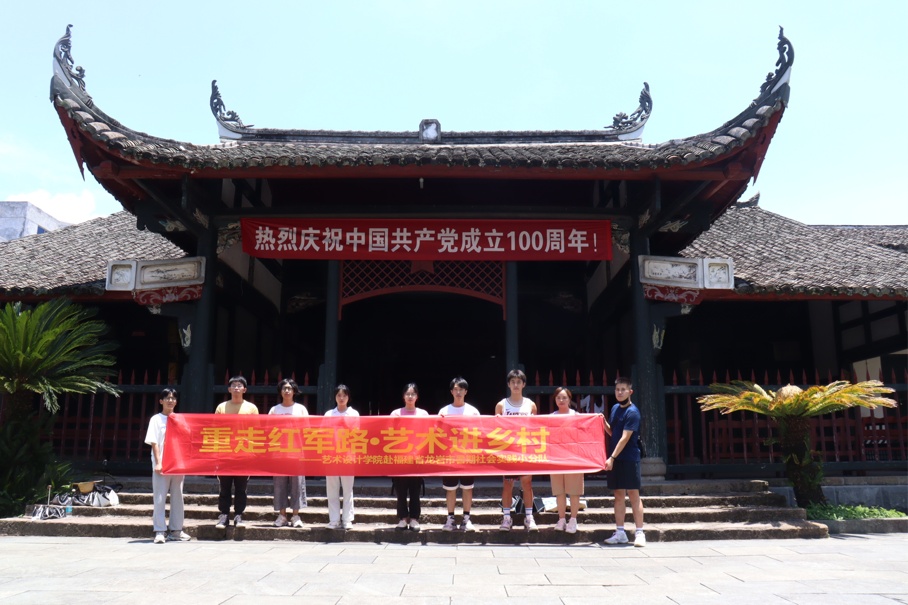 为积极响应习近平总书记提出的“全党与全社会都必须关注乡村振兴”伟大号召,引导青年学生发挥专业优势,助力乡村振兴发展,7月14日至16日,今年会今年会官网师生一行11人,在赖靓楠老师、李耀宗老师的带领下,赴龙岩市古田会址和长汀县开展了“重走红军路,艺术进乡村”主题调研实践活动。