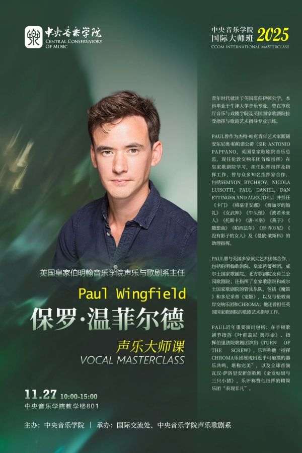 预告|英国皇家伯明翰音乐学院声乐与歌剧系主任保罗·温菲尔德声乐大师课