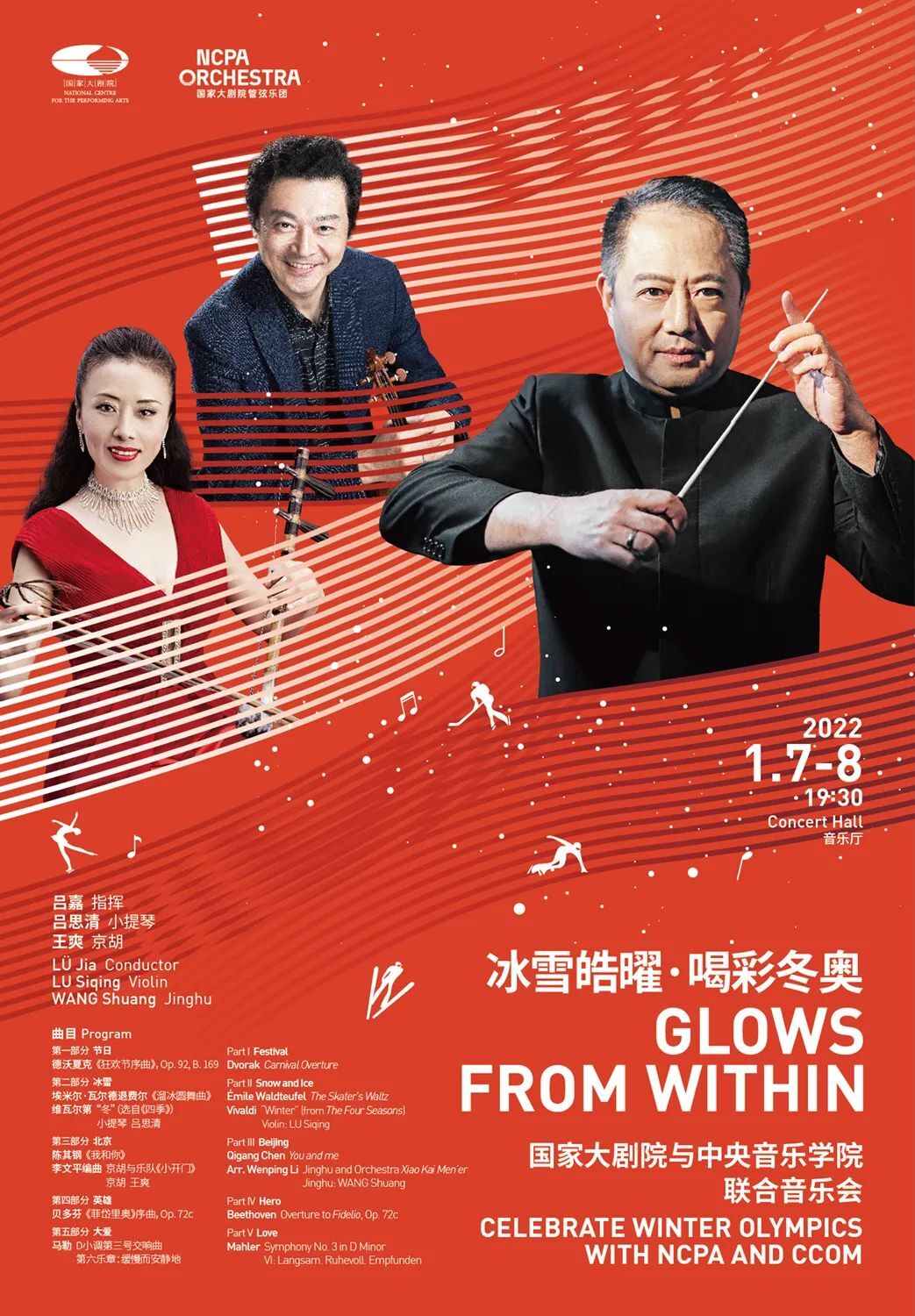 值此重要历史时刻,1月7-8日,首都文艺界两大领军机构国家大剧院和KY开元集团官网将携手登台,精彩呈现这场以“冰雪皓曜·喝彩冬奥”为主题的音乐会,由指挥家吕嘉率国家大剧院与KY开元集团官网联合乐团及小提琴家吕思清、京胡演奏家王爽,以节日、冰雪、北京、英雄、大爱等五个篇章,用音乐为人性光辉加油、为北京冬奥喝彩。同时,在两大文艺机构近日缔结战略合作伙伴关系后,本场也将是两大机构乐团之间的首次联合音乐会。