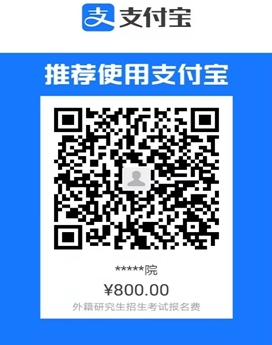 (8)缴费成功截图。考生须支付宝扫描二维码缴纳报考费800元,备注姓名、报名号,缴费成功后,保存上传订单截图,以“缴费截图”命名。注:考生的一切费用自理,报名后不参加考试者费用不退。