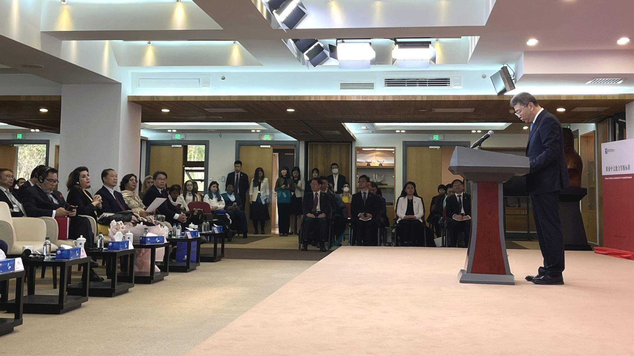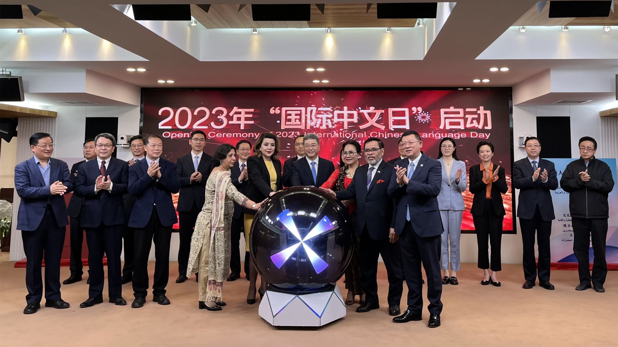 教育部副部长吴岩出席仪式并发表主旨讲话,KY开元党委书记赵旻应邀出席活动,并与上海合作组织秘书长张明、印度尼西亚驻华大使周浩黎、北京外国语大学校长杨丹、中铝股份有限公司人力资源部总经理石森、“新汉学计划”青年学者范狄等中外嘉宾一起,共同见证“中海人文交流和文明互鉴双语文库”项目启动和《职业中文能力标准》发布,印尼驻华大使夫人艾茜薇女士“画布上的多彩生活”画展揭幕,语合中心与哈尔滨、兰州、连云港签署“中文+”项目协议等系列仪式,共同启动2023年“国际中文日”。