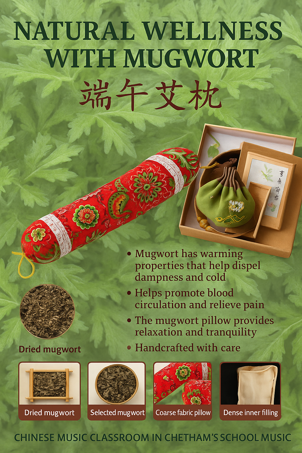 此次活动获得切特姆音乐学校创意部门的大力协助,由中文音乐教室中方负责人郐毅、中方教师姜谧娅联合策划完成。活动以“制作端午艾草香囊与艾枕”为主题,吸引了来自切特姆音乐学校音乐部、财务部、人事处、寄宿学校及文化课部的二十余位教职员工踊跃参与。