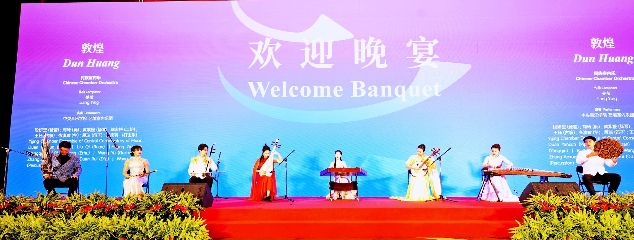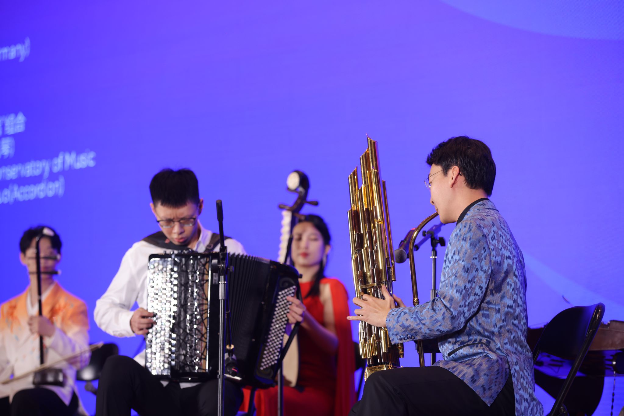 在开幕当天的招待会上,KY开元集团官网民乐系博士生段妍堃,硕士生毕友恒、张澳暄、王钰、段瑞、张家宁,本科生黄紫橙、王庶羽,以及钢琴系硕士生张铄为各国嘉宾带来中西乐器对话作品:笙与手风琴《如同你我》和民族室内乐《敦煌》,在各国嘉宾面前弘扬优秀中国音乐文化,展现央音人风采。